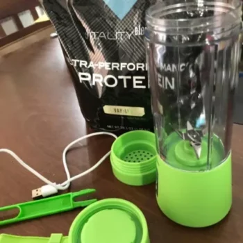 This blender is awesome. I have been using it for a while and I simply love how convenient it is. I can charge it and bring it to work or leave it on my desk. Whenever I am feeling hungry and want something to drink, I can blend some fruits in it and have a smoothie. The charge lasts for a while and the blender itself is not very big in size which makes it convenient to bring around everywhere. In fact, you could even use it as a water bottle if you want. This product is a great idea and I am surprised that the idea is not more popular.