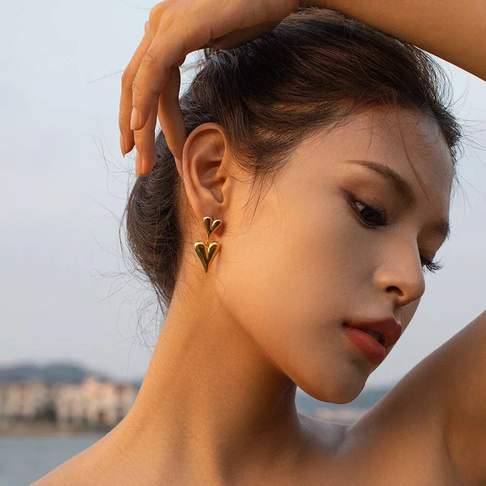 Discover the perfect blend of charm and durability with our 18K Gold Color Love-Shaped Stainless Steel Drop Earrings