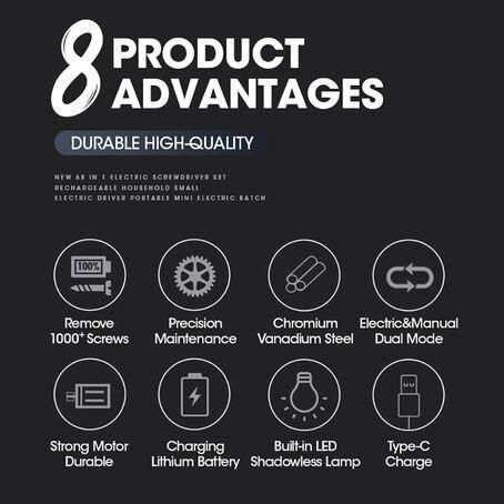 Don’t let complex tasks slow you down. Embrace the art of repairing with our 68-in-1 Precision Electric Screwdriver Set. Whether fixing a smartphone or tinkering with small electronics, this toolset is your reliable partner. Order now and experience the perfect blend of functionality and convenience!