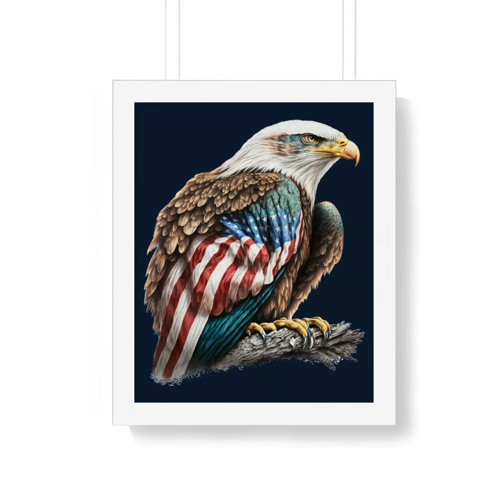 Patriotic Pride Framed Vertical Poster: American Flag with Bald Eagle Print