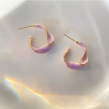 Lavender Purple Twisted Metal Hoop Earrings
