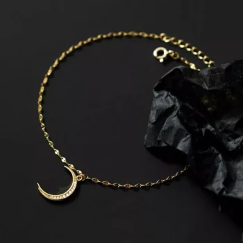 Elegant Sterling Silver Moon Anklet with Mini Zircon