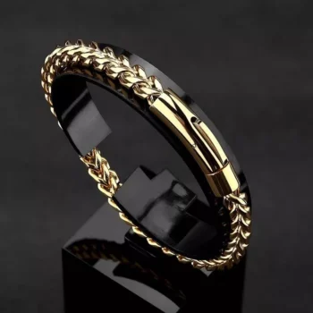 18K Gold Plated Stainless Steel Punk Rock Chain Bracelet with Magnetic Clasp