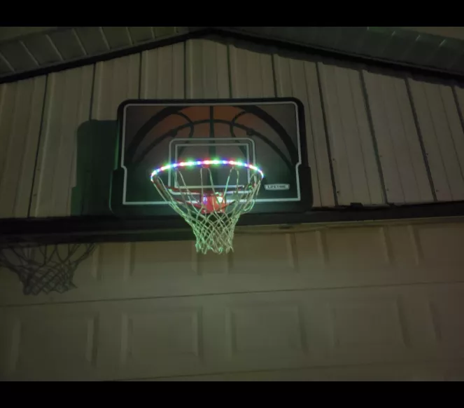 With the hot summer coming, I can not bear the hot weather during day so I have to do some sports at night. I love playing basketball so much. Then one of friends recommend that I can buy one basketball hoop lights. Then I decided to choose this one as my first try. Item arrived in time and it is so easy to install. It looks pretty freakin awesome! The light modes is pretty cool when I score. Has been used many times with no issues. Good design! Really easy to put together and has extended our basketball fun into the dark night! I will buy one more for my another portable basketball hoop.