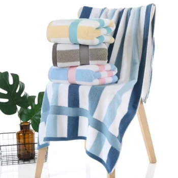 Premium 100% Cotton Quick-Dry Bath Towel – Plaid Pattern, Soft & Absorbent