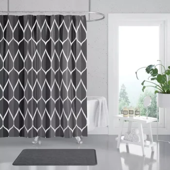 Modern Gradient Waterproof Shower Curtain with Metal Hooks