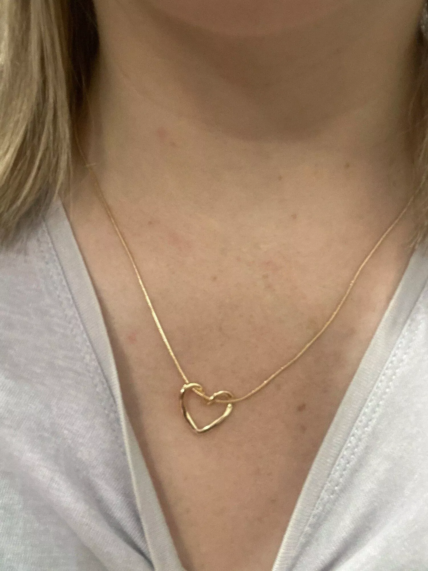 Super minimalist and pretty. I wish the chain was adjustable because it sits too low on my chest. But it looks darling on