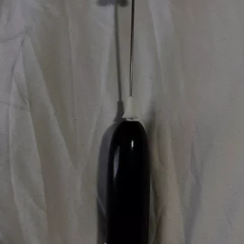 Heat up your milk, drop this bad boy in, and froth away. It makes a great froth for my lattes. Two thumbs up.