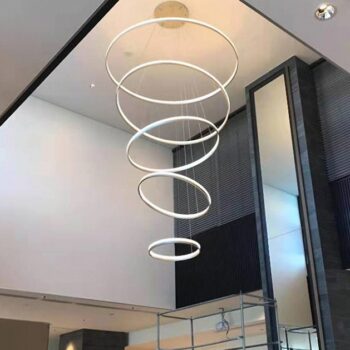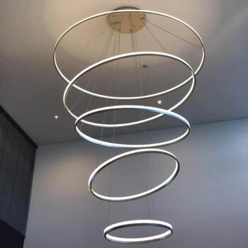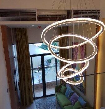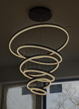 I recently installed this breathtaking lighting feature in my open-concept living room, and it has utterly transformed the space. The unique six-ring design creates a focal point that is both artistic and functional. The ability to adjust the brightness is fantastic, allowing me to set the mood for any occasion, from a bright, energizing morning to a cozy, intimate evening. The LED lights emit a warm, inviting glow that enhances the modern aesthetic of my home without overpowering it. The installation was surprisingly straightforward, and the energy efficiency of the LED technology is a major plus. It's not just a light fixture; it's become a centerpiece that elevates the entire room.