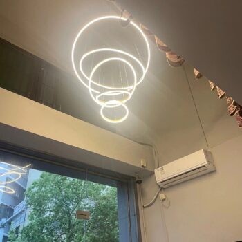 This lighting solution has been a revelation for my office space. Its modern, six-ring design not only brightens the room but also adds an element of sophistication and creativity. The ability to dim the lights allows us to adjust the setting for presentations or to create a relaxed atmosphere for brainstorming sessions. The LED technology ensures that the space is well-lit, promoting productivity and well-being among my team. The sleek, minimalist design fits seamlessly with our office decor, making it a talking point for visitors and a source of pride for the team. It's more than just a functional piece; it's an integral part of our office's identity and ambiance.