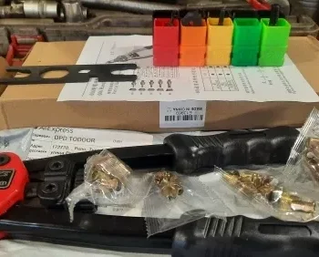 After getting a new bus for my company, I needed to move my work cabinet into it. For this, I bought rivet nut pliers. When I opened them, I noticed the M8 attachment was already in place, leaving the corresponding box empty. First, I measured and drilled the hole, then fully opened the pliers. I screwed the M8 rivet nut onto the pliers until it was almost flush with the pliers' nut. I pushed the nut into the hole until it couldn't go any further. It's important to ensure the pliers reach the metal surface, so if there's any wall protection like in my case, enlarge the hole in the protection first to allow the nut to be close enough to the metal for a secure hold. Next, I pressed the handles together. It's crucial to keep the pliers as straight as possible to avoid incorrect tension on the connector, which could cause breakage. You don't need to bend the handles too much, though. Then, I unscrewed the pliers counterclockwise by turning the large screw cap between the handles. Finally, I screwed the bolt into the hole. Tightening it pulls the nut tighter into the metal, ensuring a secure fit. I managed to secure my cabinet very firmly. If you're unsure how to do it, there are helpful explanatory videos on YouTube.