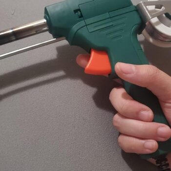 Really easy to use with one hand. You just pull a trigger and the solder comes out on its own. The only problem is it doesn't have a holder, so you need somewhere to put it when it's hot.
