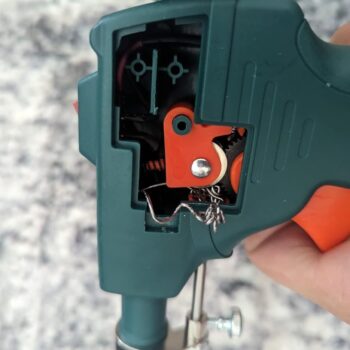 This automatic soldering gun is a breeze to use with one hand. Just a tip: when you load the solder spool, make sure it unwinds clockwise into the orange feeder cone. You'll need a small flathead screwdriver to open the cover and get to the inside parts. When you feed the wire in, use tweezers to guide it straight into the orange cone right by the trigger. If you mess up and don't get the wire into the right spot, no worries – just press the back part of the orange cone to reverse the wire and start over. This soldering gun has totally changed the game for me. It's an amazing tool for home DIY and electrical work. I really recommend it to everyone.