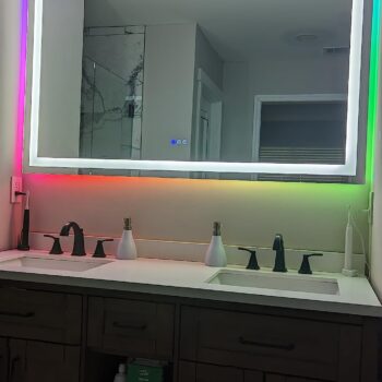 Elevate your bathroom’s ambiance with our LED Vanity Mirror, a perfect blend of elegance and functionality. This mirror is not just a reflection of you but a showcase of your taste for the finer things in life. Its modern design, complemented by RGB backlighting and dimmable features, brings a touch of luxury to your daily routine. Whether you’re getting ready for the day or unwinding in the evening, this mirror provides the perfect lighting to suit your mood and needs.