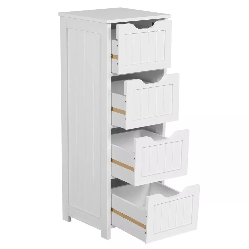 Elevate Your Bathroom: Elegant White Wooden Cabinet with 4 Drawers