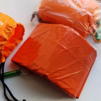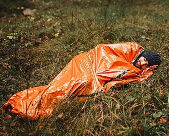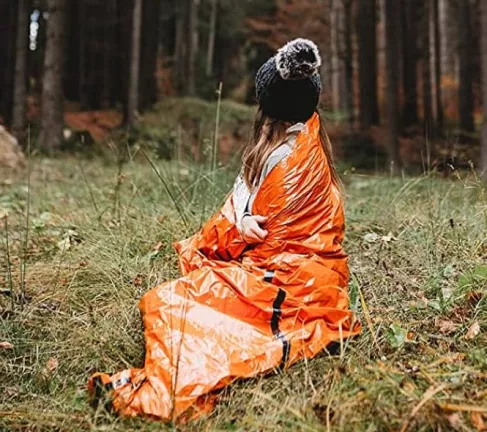 In the most dire of situations, the vivid orange color of our Emergency Sleeping Bag can act as an emergency signal to rescue crew in the air. You can use the bag to form a visible 79 x 35.5 in (L x W) signal to anyone to see. This sleeping bag is an absolute necessity for camping and outdoor adventures: it not only keeps you warm at night as a sleeping space and protected from extreme elements, but can save your life in life-rescue situations and emergencies.