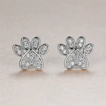 Cute Heart Cat Paw White Zircon Stud Earrings