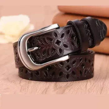 Trendy Hollow Pattern Women’s Belt – Vintage Pin Buckle, Metal & PU, Ideal for Jeans