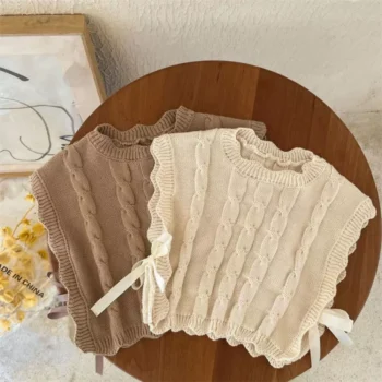 Korean-Inspired Knitted Vest Sweater for Baby Girls – Cozy and Stylish Autumn Winter Wear
