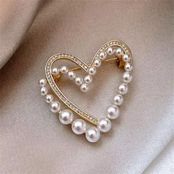 Elegant Double Layer Heart Brooch with Rhinestone & Imitation Pearl