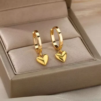 Vintage Gold Stainless Steel Heart Drop Earrings