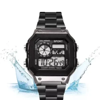 Stainless Steel Digital Sports Watch: Waterproof, Multifunctional LED Wristwatch for Men