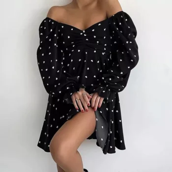 Sexy V-Neck Heart Print Mini Dress for Women