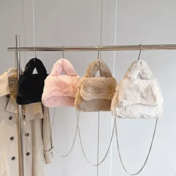 Chic Faux Fur Top-Handle Sling Bag with Removable Shoulder Chain