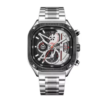 Waterproof Black Quartz Square Dial Men’s Wristwatch with Chronograph & Luminous Hands