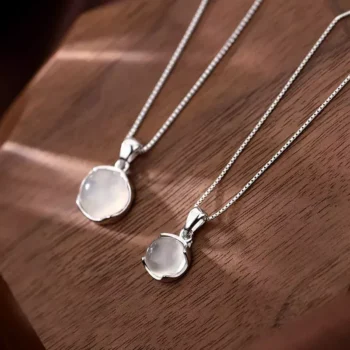 Luxury White Moonstone Pendant Necklace: Vintage Round Design in Silver Plating