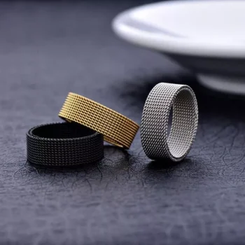 Elegant 8MM Gold Plated Stainless Steel Mesh Ring