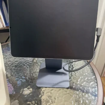 Loving this iPad stand! It's super sturdy with a strong magnet and the side ports are a nice touch. The included USB-C cord is a great bonus. Overall, a fantastic product!