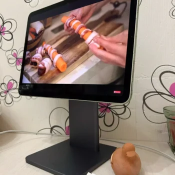 This iPad support is just phenomenal! It has a great grip and doesn't move around. Made of good metal and super easy to mount – just tighten two screws. Very comfortable for use. Highly recommend 👍