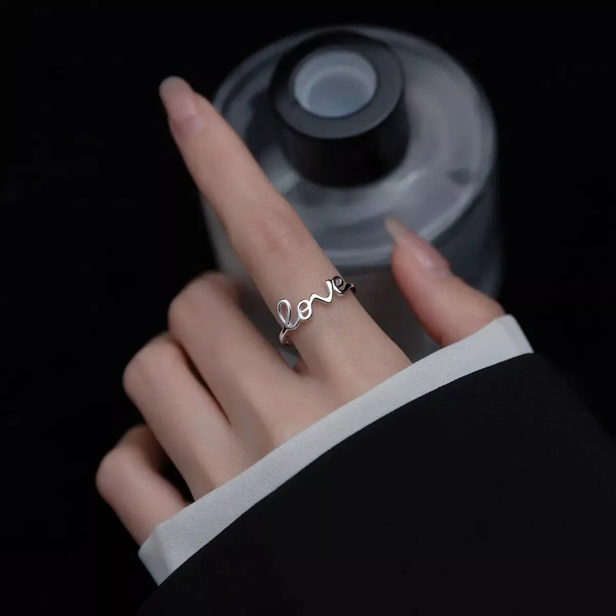 Romantic Letter Love Ring For Women Geometric Creative Finger Rings Engagemen Wedding Couple Stainless Steel Jewelry Gift
