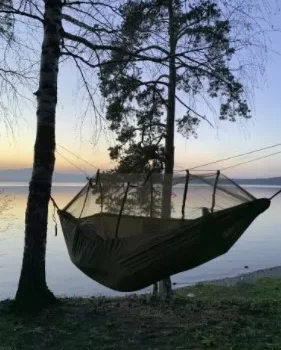Used this hammock for 4 nights in the Olympic Nation Park, it was light, easy to set up, and very comfortable. I’d give it 5 stars but the tree straps that come with it are a little jinky and too short for most trees in Western Washington. Before I went on my trip I ordered different 20’ long straps.