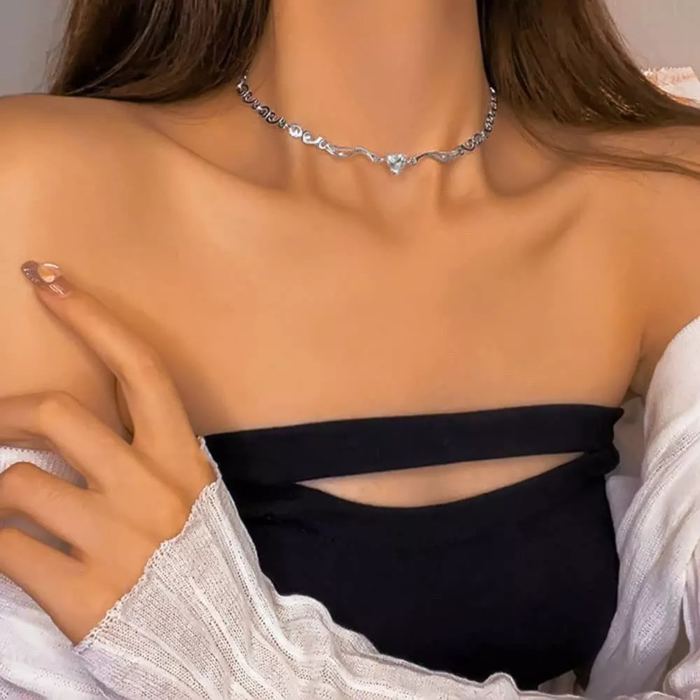 Looking for a piece that adds a touch of sweetness and charm to your outfit? Say hello to our Heart Crystal Choker Necklace! Crafted with love and attention to detail, this silver-colored necklace is a must-have accessory for women and girls alike.