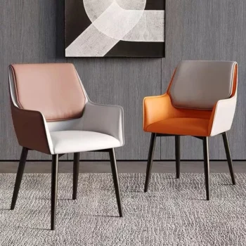 Luxury Nordic Leather Dining Chair with Metal Legs and Ergonomic Backrest
