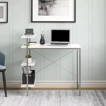 Compact White Student Desk with Side Storage