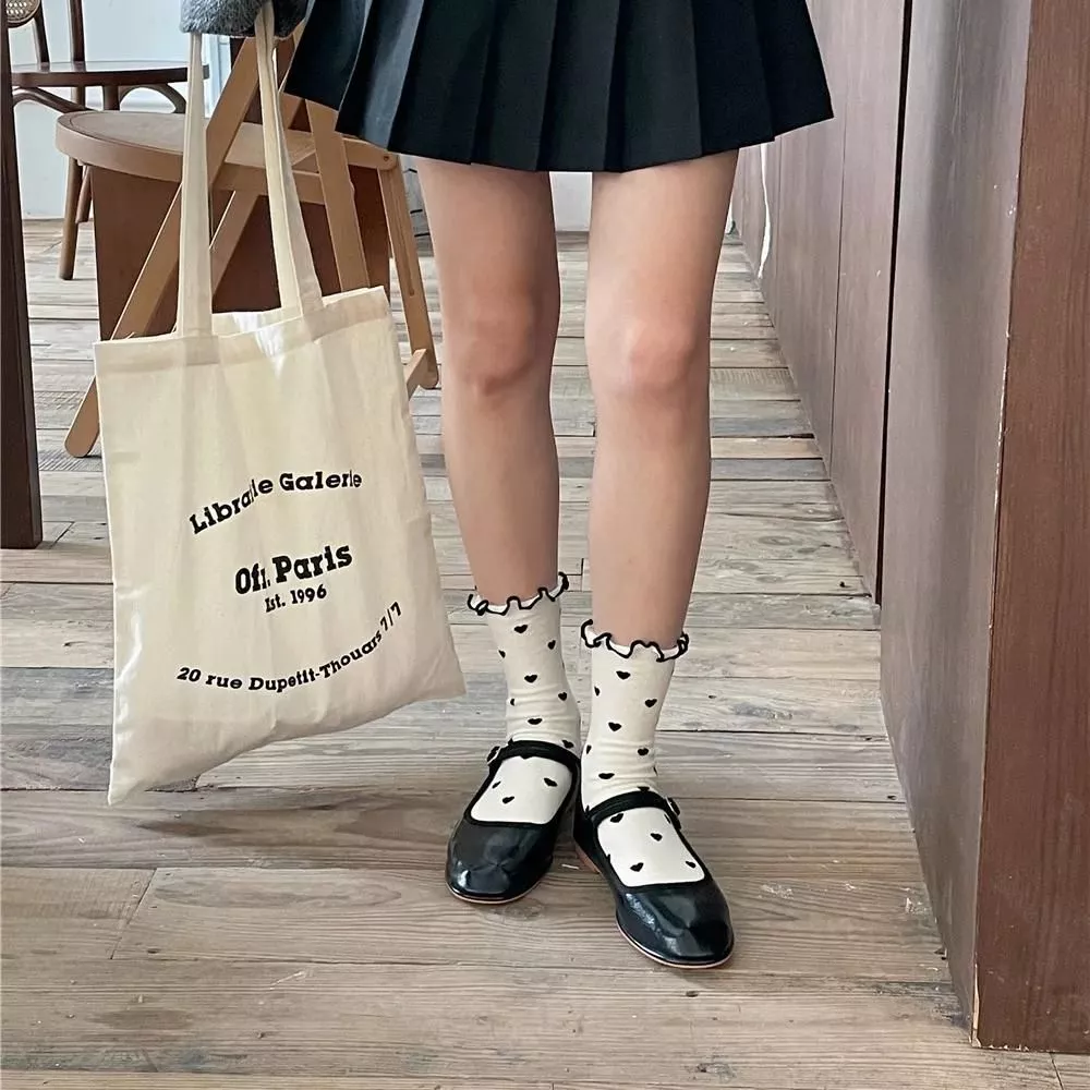 It’s not just the adorable design that sets these socks apart; it’s the attention to detail and quality. Unlike ordinary socks, these feature a unique blend of materials that ensure comfort, breathability, and durability. The charming heart print and ruffles elevate them from a basic accessory to a fashion statement, embodying a blend of Japanese style and vintage aesthetics.