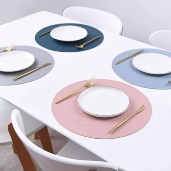 Luxury Faux Leather Round Placemats and Coasters Set – Heat Resistant, Non-Slip, Washable Table Mats