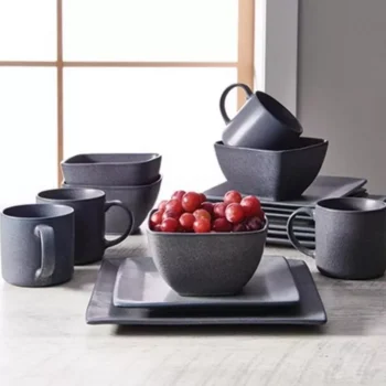 Modern Dark Gray 16-Piece Ceramic Dinnerware Set