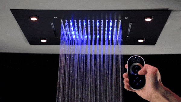 • Large LED Shower Head: The expansive shower head delivers a rainfall and waterfall experience, with the added luxury of LED lighting.