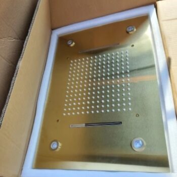 Introducing the epitome of modern bathroom sophistication – our Thermostatic Gold Shower Faucet with Ceiling LED Rainfall Shower Head. Crafted for those who seek a fusion of contemporary style and cutting-edge functionality, this shower system is designed to transform your daily routine into a luxurious spa-like experience. Its gleaming brushed gold finish and grand size elevate your bathroom’s aesthetic, providing a statement piece that is as functional as it is beautiful.