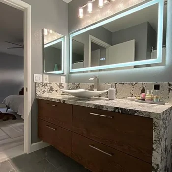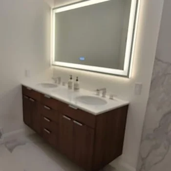 Introducing our state-of-the-art Waterproof Double Sink Mirror, a perfect blend of sophistication and functionality for your bathroom or dressing area. With its expansive full-length design and modern lighting, this mirror provides an unmatched clarity that is essential for your daily grooming and dressing needs. Crafted to create an atmosphere of luxury, it enhances your space with a luminous glow and a touch of modernity.