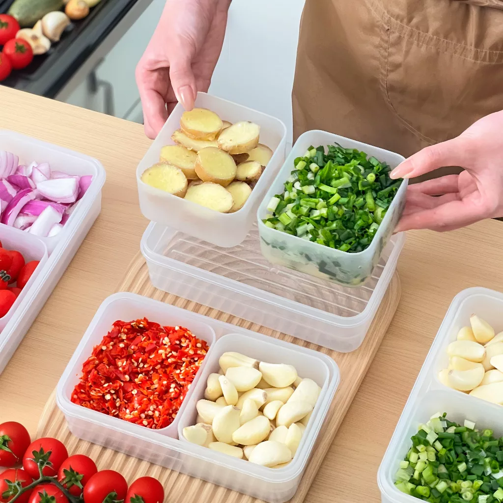 • Organize Your Kitchen: Say goodbye to cluttered drawers and countertops. The two compartments let you store different ingredients separately, helping you stay organized and reducing food spoilage.