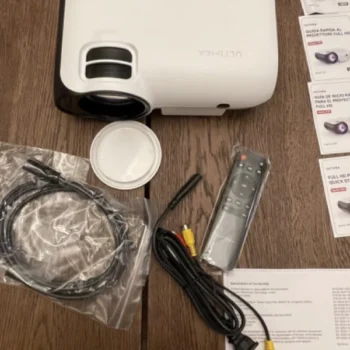 This projector stands out for its quality construction and sleek design. Setting it up was straightforward, offering stunning visuals for home entertainment. It arrived well-packaged with all the necessary accessories, though it lacks a built-in tripod adapter and DVD player, which would have made it even better.