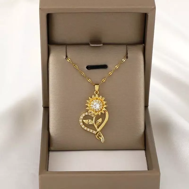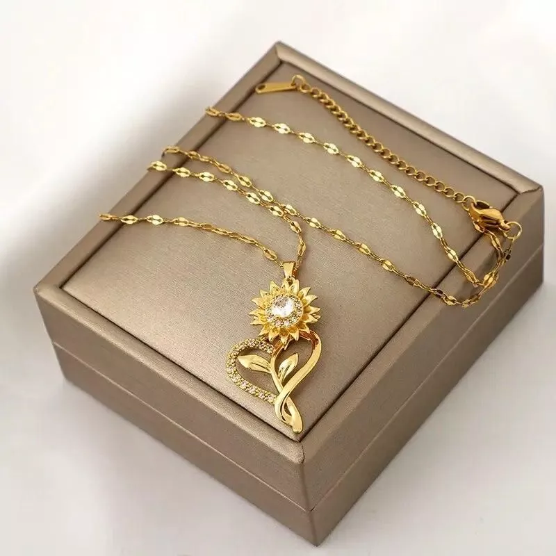 What sets this necklace apart is its unique ability to rotate, offering an ever-changing look that keeps the wearer’s style fresh and engaging. Coupled with the symbolic meaning of the sunflower, representing loyalty and adoration, and the sparkle of zircon stones, it’s not just a gift but a memorable keepsake that cherishes moments and expresses deep feelings.