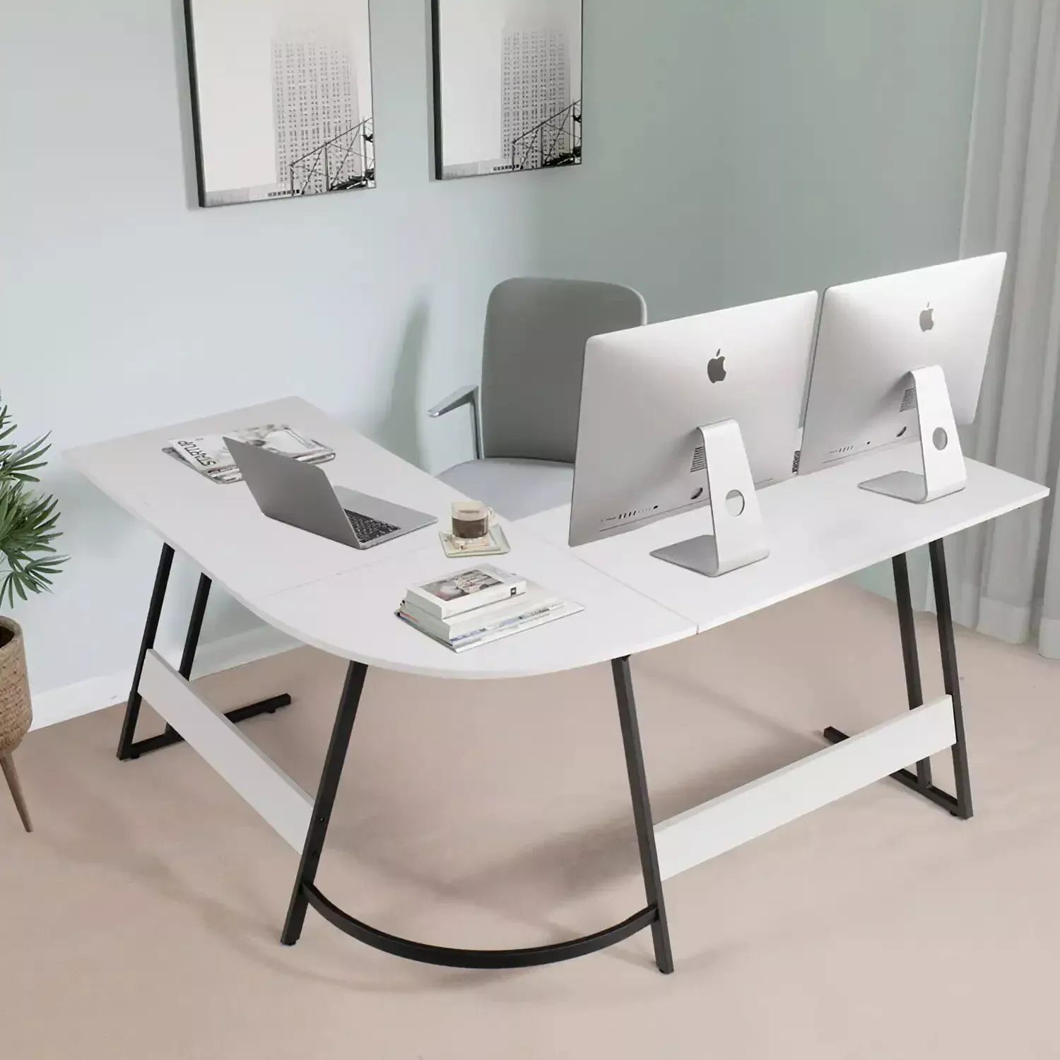 Elevate your home office with our Sleek White L-Shape Computer Desk, meticulously designed for the modern professional. This contemporary desk blends functionality with a minimalist design, making it an ideal choice for both home and commercial settings. Whether you’re working, studying, or gaming, this desk is engineered to enhance your productivity while adding a touch of elegance to your space.