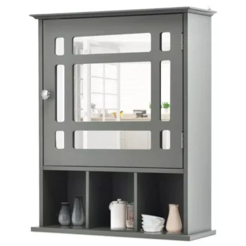 Elegant Grey Wall-Mounted Mirrored Medicine Cabinet with Adjustable Shelf