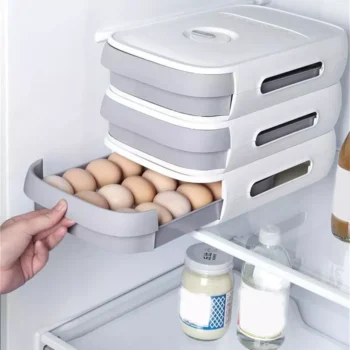 Efficient Space-Saving Refrigerator Egg Organizer with Rolling Drawer